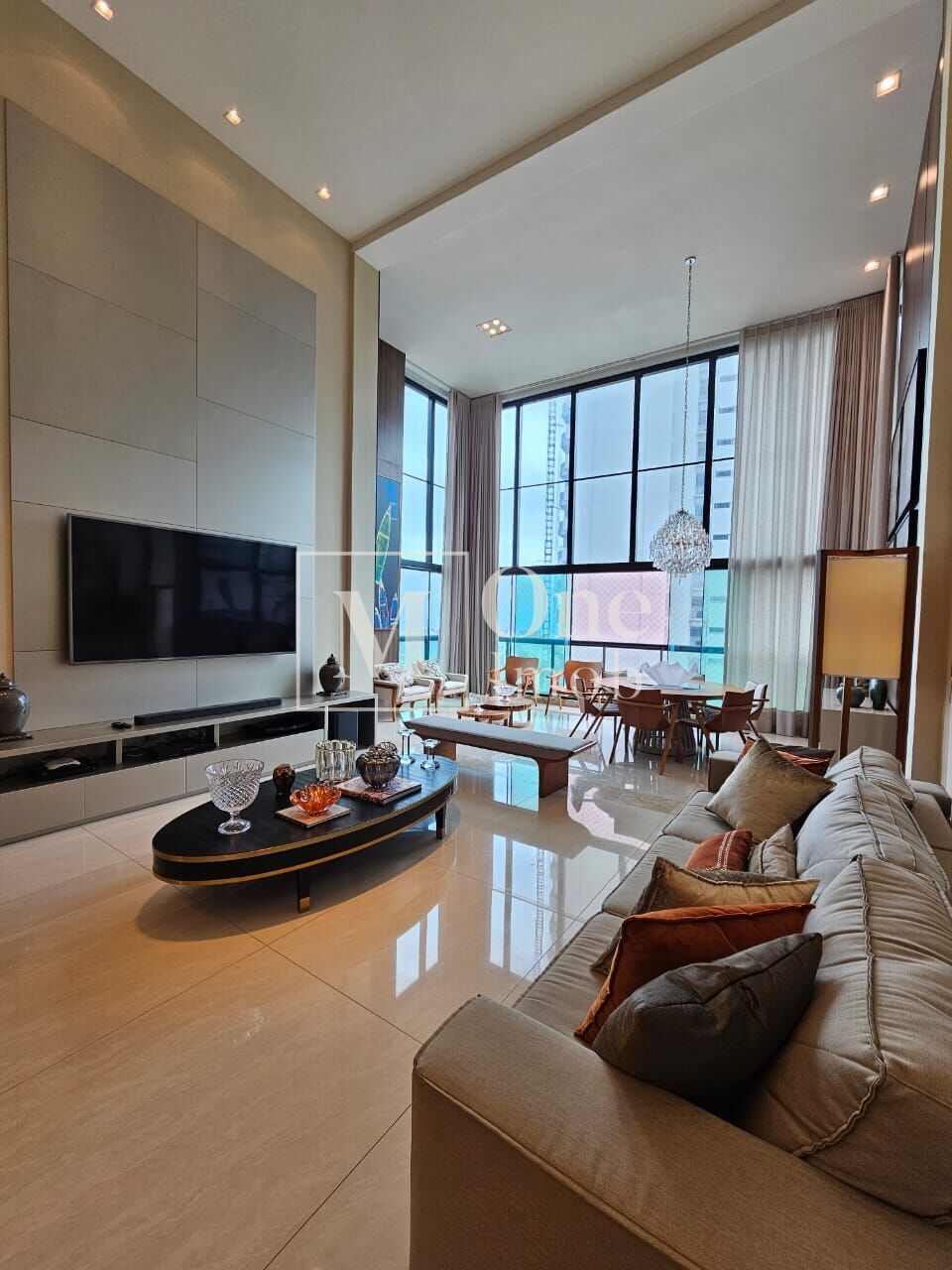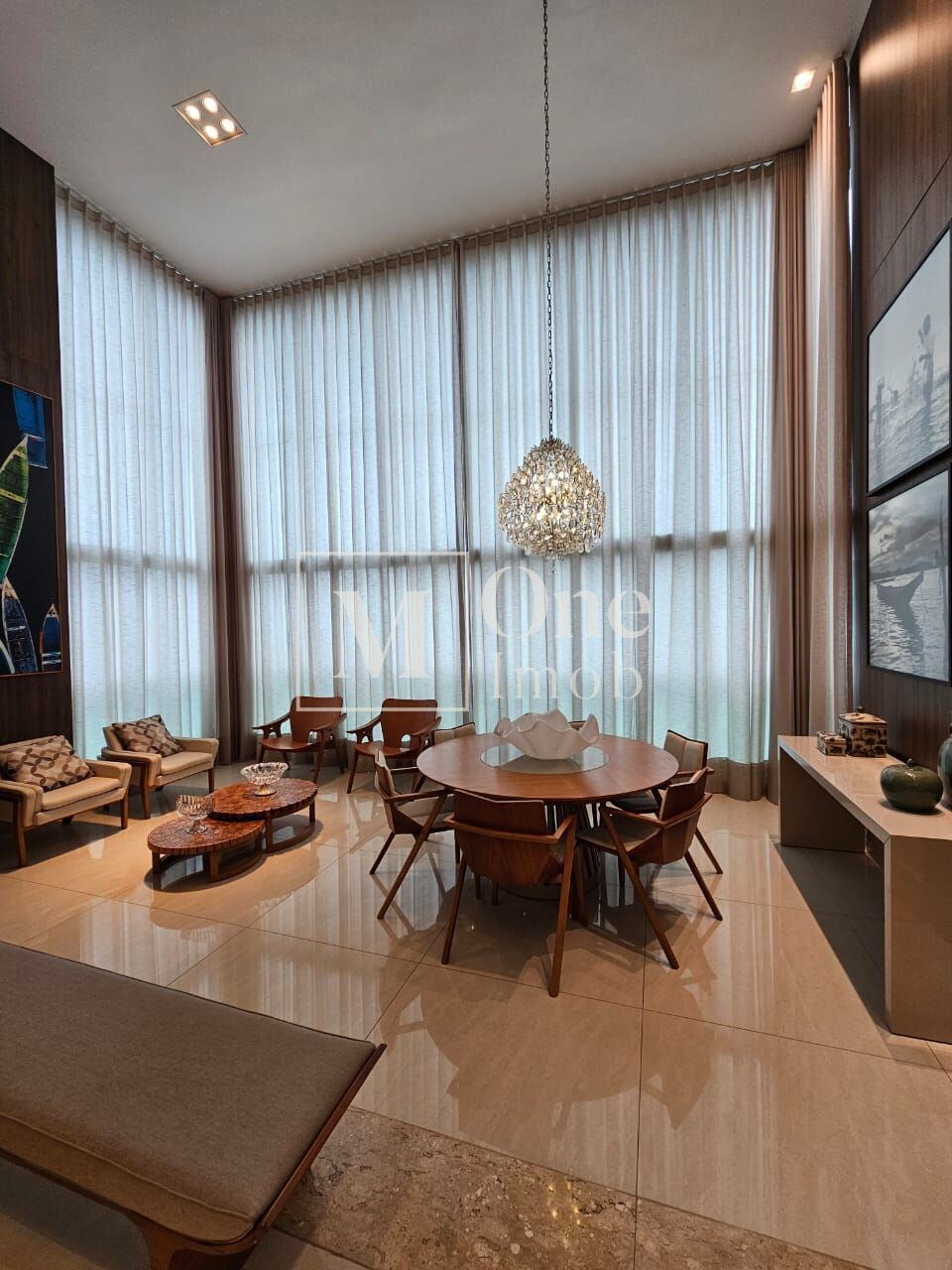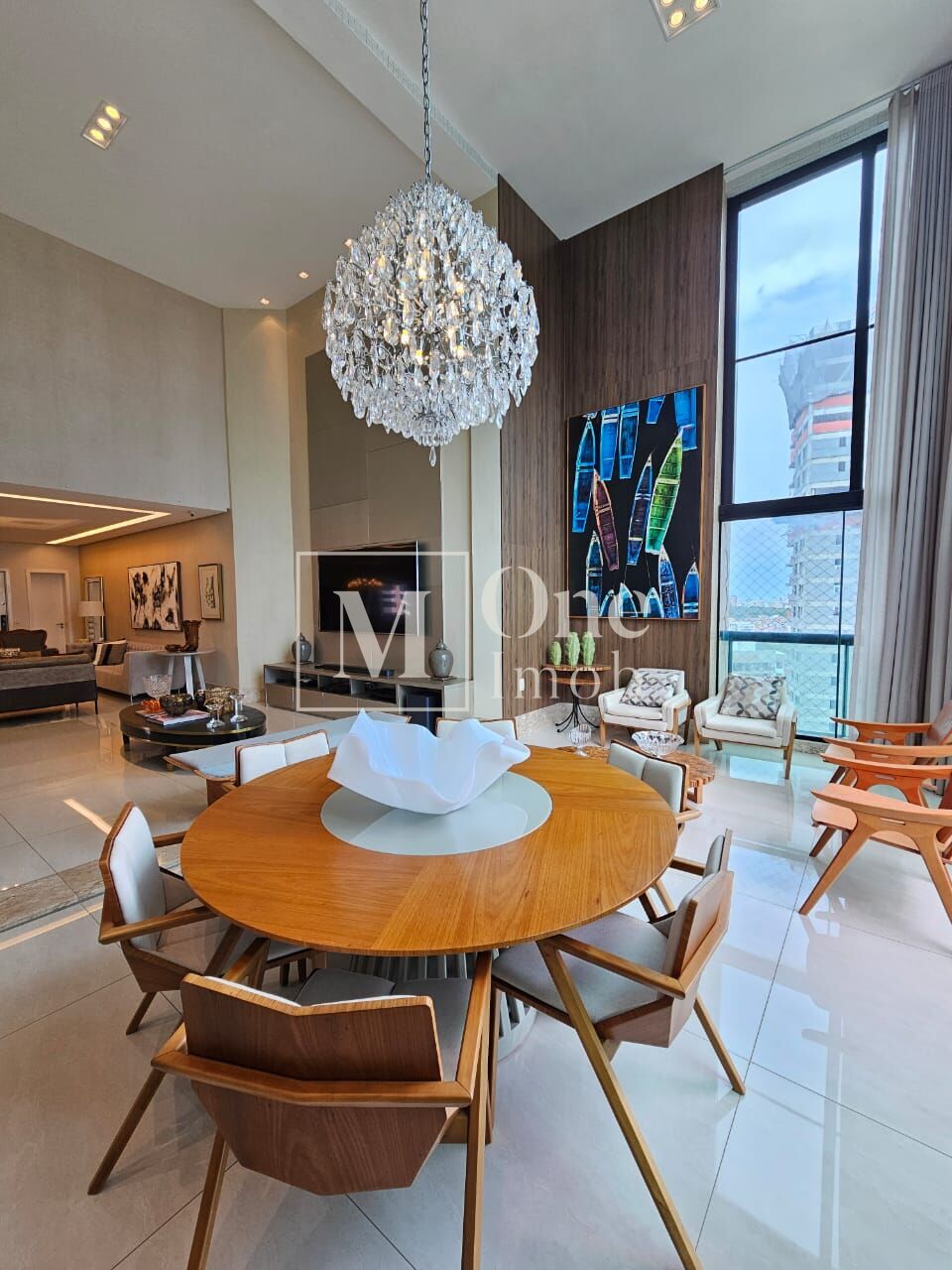 - Varanda com fechamento de vidro incorporada à sala com pé direito duplo