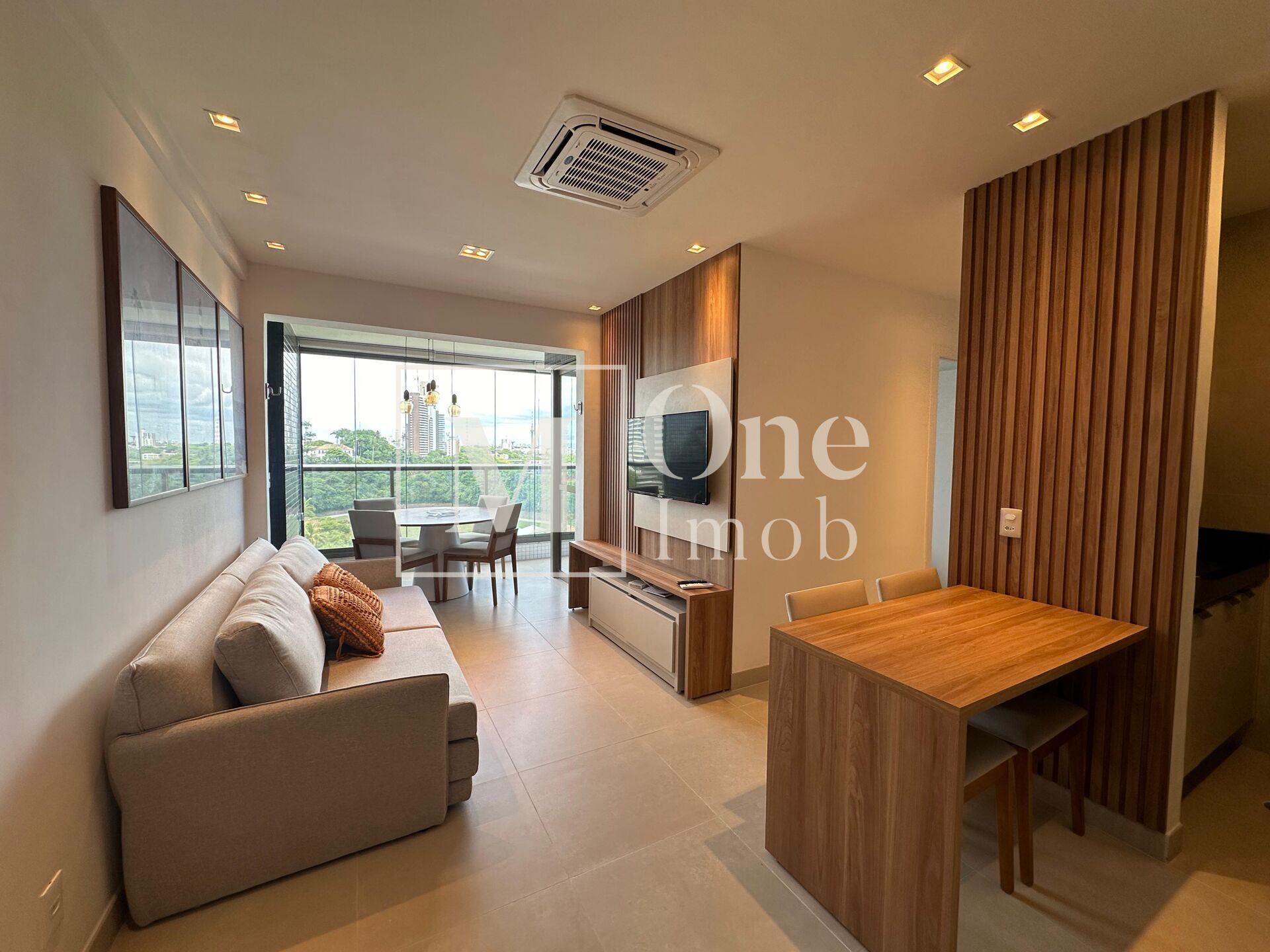 São 60 m², com vista para a avenida e 1 vaga de garagem.