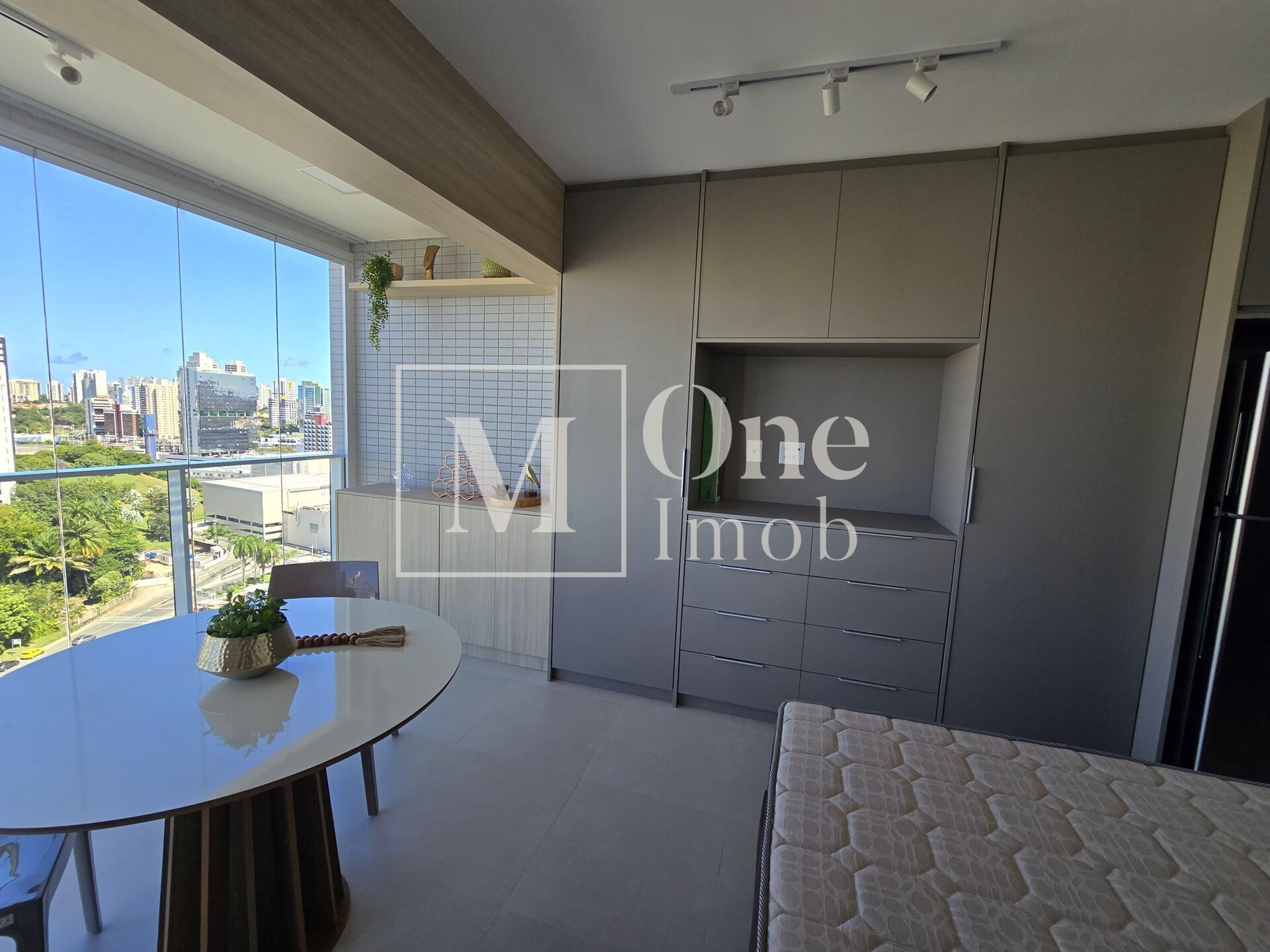 Apartamento 1/4 mobiliado no Urban Caminho das Árvores, com 30m², nascente total, andar alto, novo e nunca habitado.